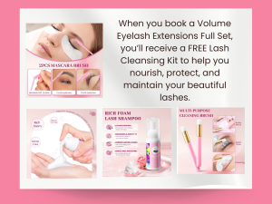 When you book a Volume Eyelash Extensions Full Set, you’ll receive a FREE Lash Cleansing Kit to help you nourish, protect, and maintain your beautiful lashes.